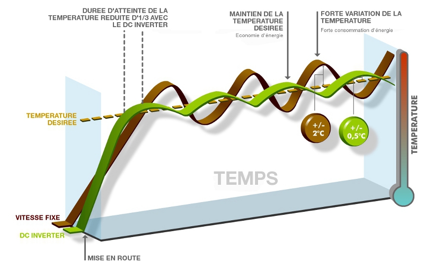 La technologie inverter est un dispositif qui assure une consommation électrique proportionnelle aux besoins dans ses fonctions de climatisation et de chauffage. Tout en étant économique, votre matériel pourra fonctionner de manière optimum et gagner en longévité. En effet, fonctionnant à basse vitesse, cette technologie permettra au compresseur de votre pompe à chaleur de ne pas s’user trop rapidement.